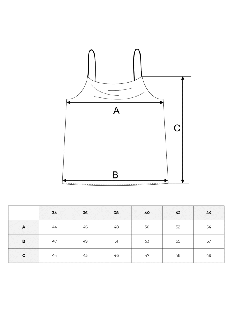 Top with wave neckline. Front adapts to bust shape. Adjustable straps.
