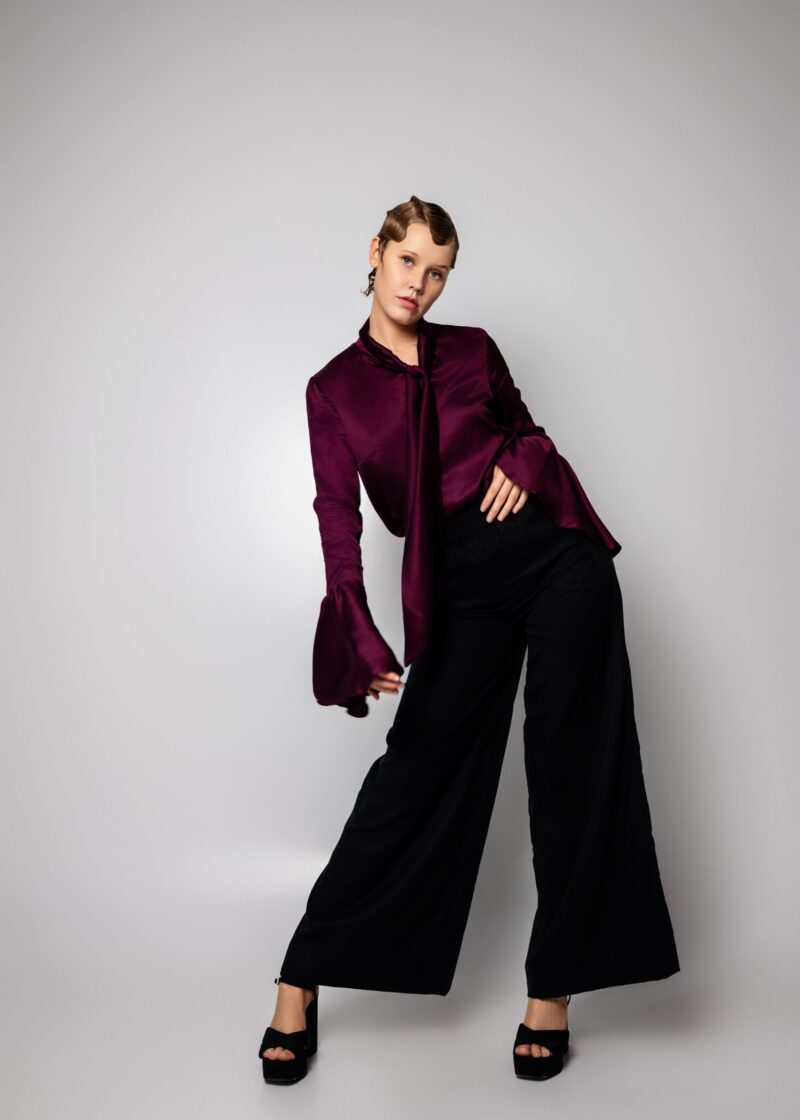 Szerokie spodnie z lyocellu na elastycznej talii. Prosty krój, swobodna forma.