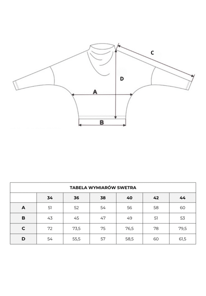 Wymiary dotyczą wielkości ubrań i są podane w centymetrach.