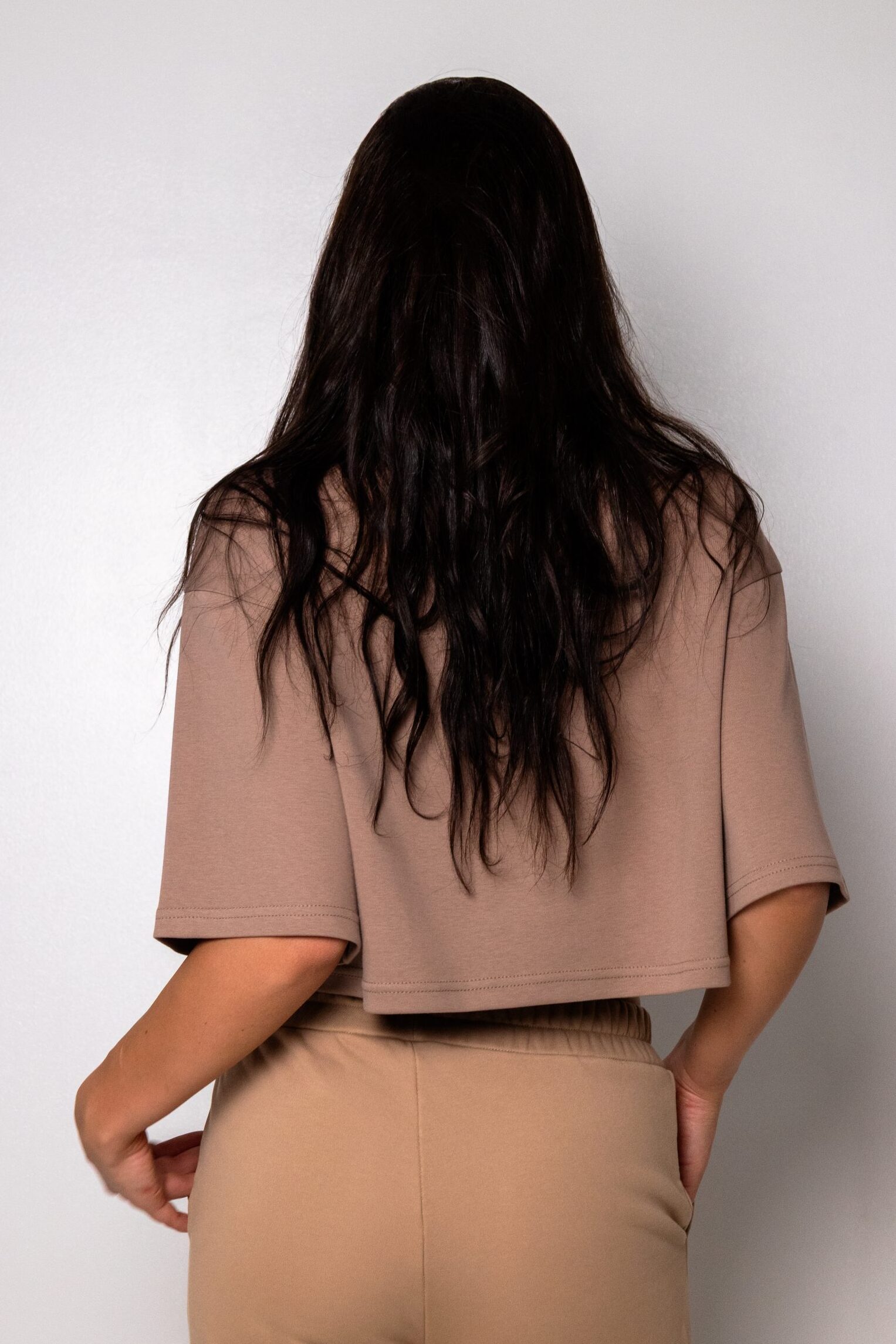 Krótki T-shirt uszyty z grubej bawełny o gramaturze 300g.