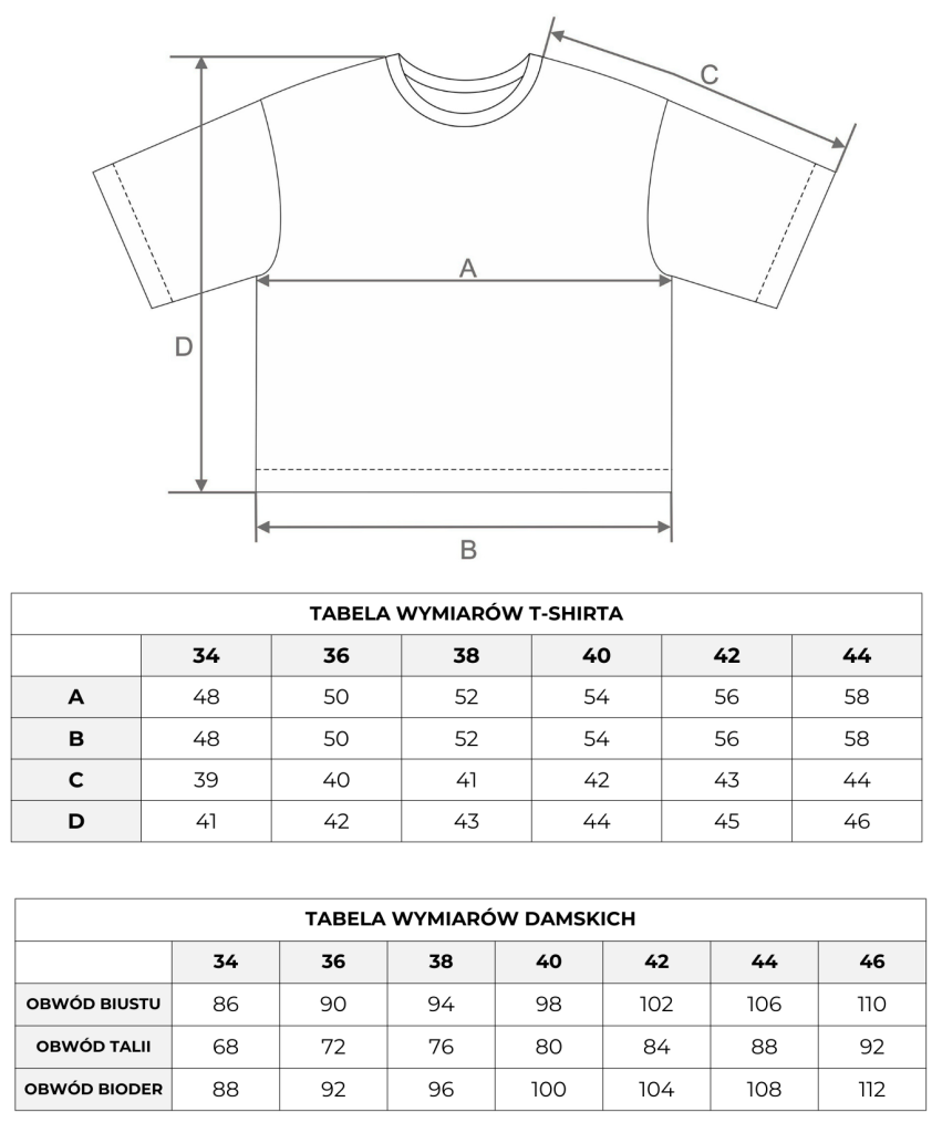 Wymiary dotyczą wielkości ubrań i są podane w centymetrach.